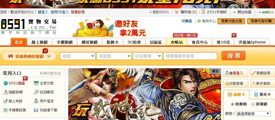 ↓數字科技推出8591的手機App,讓手機用戶也可透過該平台媒合遊戲寶物交易。