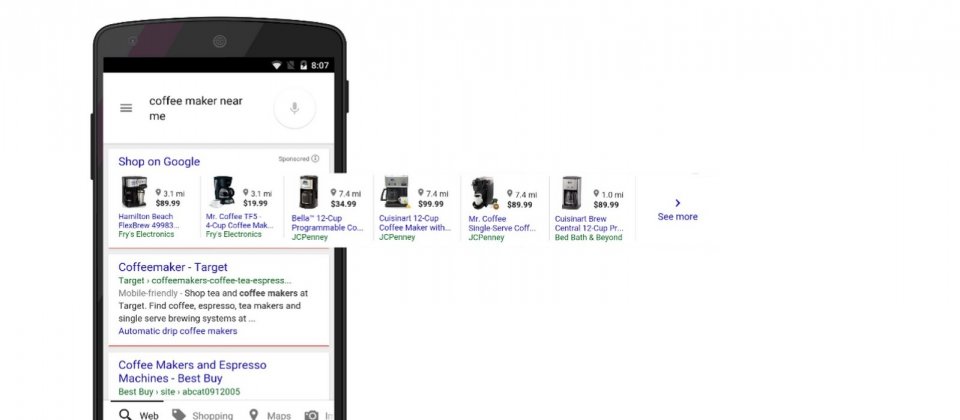 首先,Google改良了行動搜尋結果呈現商品的方式,可顯示產品評比及附近店家的供貨狀況,預期能為零售店家網站帶入高品質的流量。新功能本月將先推向Android版Chrome 應用程式,未來幾個月內再加入到iOS版。
