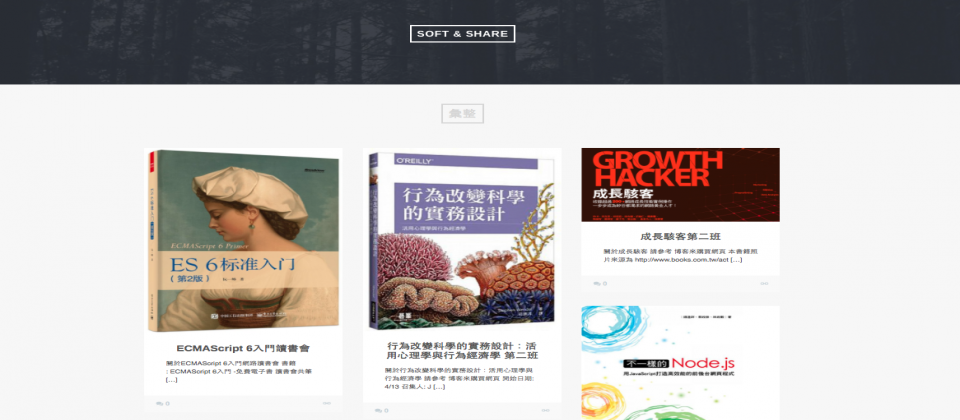 從2016年3月起, 在Soft & Share的平台上, 已陸續組成9組這類型網路讀書會. 讀書會以軟體開發、產品設計、團隊管理或創業等相關的書本為主. 目前讀書會正在讀的書有成長駭客, 行為改變科學的實務設計, 設計的心理學:人性化的產品設計如何改變世界, 不一樣的Node.js, Driving Technical Change, Creating Great Teams, Agile Web Development with Rails 5, ECMAScript 6如門. 正在召集讀書會的書有DevOps Troubleshooting:Linux Server Best Practices, The Effective Engineer, 和 Real-World Kanban .