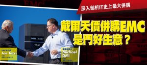 Dell以670億美元併購EMC的消息震驚業界,打破了科技史併購金額的新紀錄,不只讓戴爾成為全球儲存龍頭和第二大伺服器供應商,也將是全球軟體供應商巨頭之一,更是虛擬化技術龍頭,也有能力成為與AW
