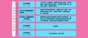 9月底剛公布的資通安全管理法草案版本,以資通安全管理為核心,分為5個章節,包括了總則、公務機關規範條款、非公務機關規範條款、罰則和附則,合計有24條