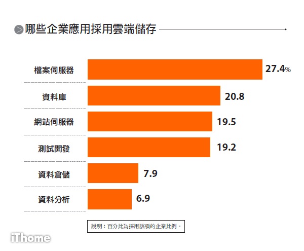 檔案共享是企業最普遍雲端儲存用途,比例達3成