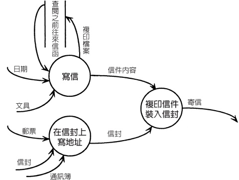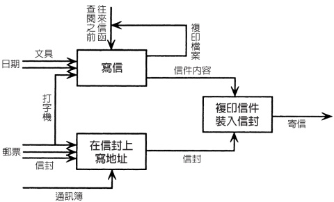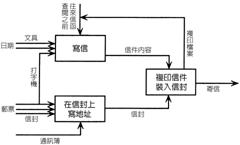 | 圖1-4:寫信程序的另一種圖表。比較不容易一目了然,但程序變化時容易修改。 |