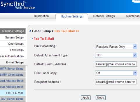 傳真轉傳功能複合機也 具備將傳真轉傳至電子郵件功能,可將設備接收到的類比傳真,轉換為TIFF或PDF等數位格式,並且自動發送到指定的電子郵件收件者Canon、京瓷美達與Ricoh等廠商的數位複合機,以及Samsung的多功能事務機,均內建這項功能。 |