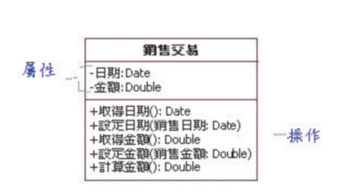 請看到圖1的銷售交易類別,在UML中,類別就是一個包含屬性與操作的整體,資料抽象的結果放置於類別內部的屬性區,程序抽象的結果則放置於類別內部的操作區。