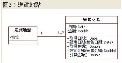 以線上購物系統為例,每一筆銷售交易都需要記錄顧客的送貨地點,如圖3所示。可是,你可以發現,送貨地點類別裡頭其實只有一個名為「地址」的屬性。