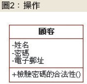 因此,針對首次設立的密碼,或者是重新設立的密碼,都得通過密碼設定規則。所以,這個時候,系統分析師就可能在顧客類別中,新增一個名為「檢驗密碼的合法性」的操作,如圖2所示。