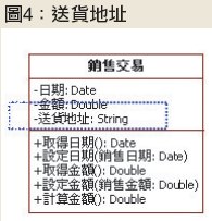 在這種情況下,其實我們可以把圖3改成圖4,刪去送貨地點類別,並且把它的屬性併入到銷售交易類別中,如圖4所示。