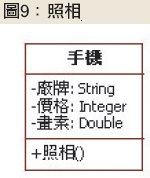 「類別中的屬性是否總是適用在所有物件上?」以圖7為例,並不是所有的手機都具有照相的功能,因此手機類別中的畫素屬性,就不會適用在所有的手機物件上頭。