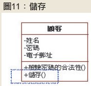 請看到圖11的範例,把顧客的資料儲存到資料庫去,這是跟實作有關的操作,並不適合出現在分析模式中。