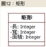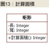產出?」有些資料是系統可以算出來的,這類可以衍生推得而知的屬性,可以不必放在類別中。以矩形為例,矩形類別中保存了長、寬和面積,如圖12所示。