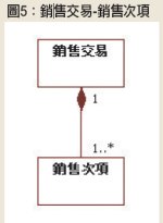 譬如,銷售交易和銷售次項之間的情況,屬於集合-成員,但是銷售交易可以控制銷售次項的新增或刪除,所以適合採用組合關係,如圖5所示。