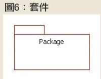 「主題」(subject)是個群組機制,系統分析師可以用它來將大量的類別分群。在UML中,提供了「套件」(package)概念和圖示,用來將相關的元素群聚在一起,如圖6所示。