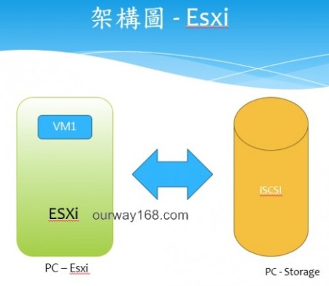 這個實驗檢視Esxi 及Hyper-V 內的VM遇到iSCSI Server突然掛點時的情況。實驗項目:當PC – Storage 無預警突然關機時,VMWare Esxi及Hyper-V(Win2012)分別會有什麼樣的情況…