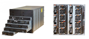 透過10U機箱,IBM Flex Systems可安裝14臺半寬計算節點,且裡面的網路、電源供應器與風扇等元件,全部模組化