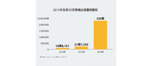 3D印表機將自2015年開始有50%的成長,並因技術成熟且專利成本降低,1,000美元以下的消費型機種將成為2018年之前市場成長主力