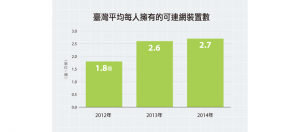Google針對全球與臺灣消費者進行研究調查,結果顯示臺灣平均每人有2.7個行動裝置,不僅行動購買力全球第一,先研究再買的消費習慣比例也高居全球第一。