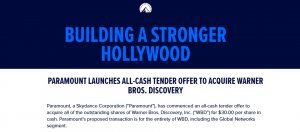 華納兄弟探索(WBD)準備將旗下串流業務出售給Netflix,讓之前與WBD商討合併未果的派拉蒙(Paramount),決定對WBD發動惡意收購