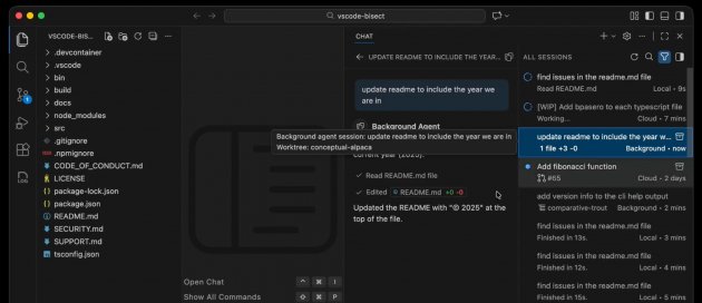 新版VS Code把代理工作階段整合進Chat,關閉對話仍可持續執行,並加入Continue in交辦流程、Git worktree隔離修改,以及Agent HQ集中管理代理