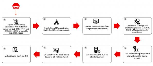 微軟與威脅情報公司Huntress指出,上個月底SolarWinds修補的網路IT服務臺Web Help Desk(WHD)重大漏洞CVE-2025-40551,已出現攻擊行動,駭客成功入侵後先後部署遠端管理工具Zoho ManageEngine、數位鑑識與事件回應(DFIR)工具Velociraptor,以便進行後續的活動