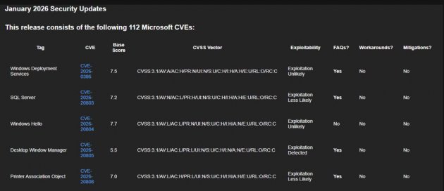 微軟在1月例行更新修補零時差漏洞CVE-2026-20805、CVE-2026-21265,以及CVE-2023-31096,其中的CVE-2026-20805,已被用於實際攻擊行動