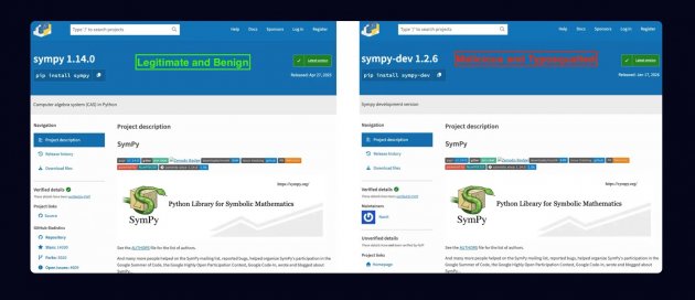 PyPI惡意套件sympy-dev仿冒SymPy,攻擊者將惡意程式碼埋入多項式相關路徑,待使用者呼叫特定函式才拉取設定檔,並以記憶體方式啟動Linux ELF載入程式,最終執行XMRig進行加密貨幣挖礦