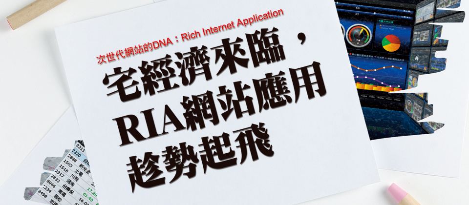 「宅經濟」來臨,當使用者習慣「窩」在家裡上網,想要在百家爭鳴的Web平臺,抓住消費者的視覺焦點,網站的設計就格外重要,因此RIA(Rich Internet Application)相關技術受到矚目。而且不論是企業、網站設計業者或獨立軟體開發商,都有實際投入開發並推出服務的案例。