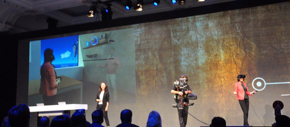 微軟在中國深圳WinHEC大會現場也示範用VR頭戴裝置來操作開啟Windows10桌面應用,能將PC桌面上2D應用放進這個3D虛擬空間來操作,不僅能查看自己桌面的郵件、瀏覽照片,也能播放自己拍攝的360度環景影片。