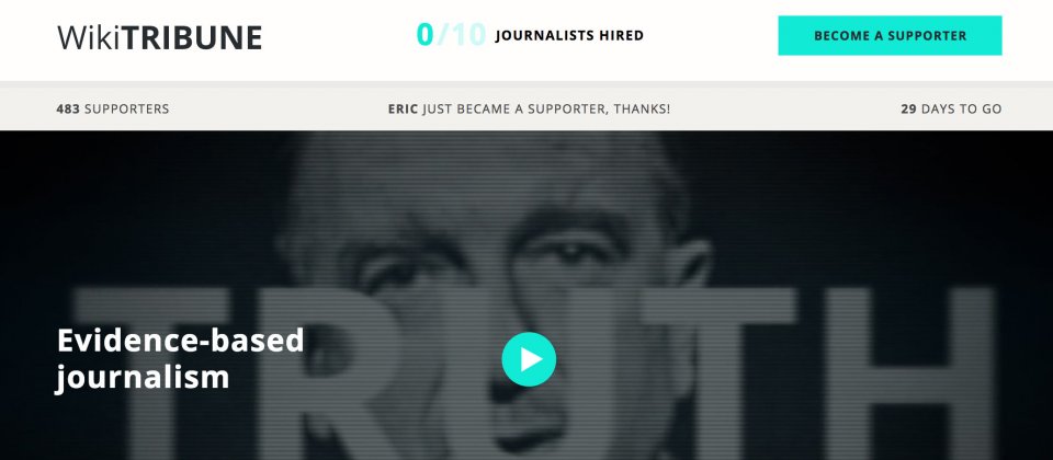 Wales說明,Wikitribune是一個全新的新聞平台,它既編列了新聞記者,也有負責審核的社群志工,亦正在開發可具備證據、可呈現精確資訊的工具,讓讀者確定自己所知道的是對的。