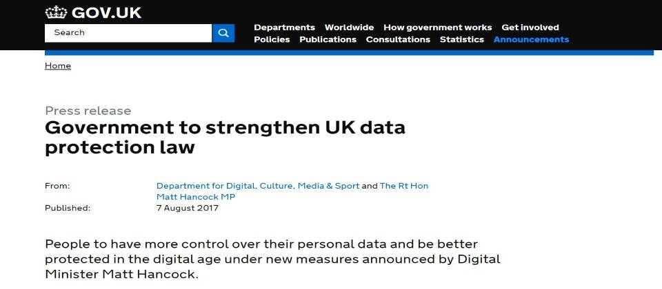 近期英國數位、文化、媒體暨體育部宣布,英國政府正打算藉由新的資料保護法案(Data Protection Bill)加強保障當地民眾的個資,賦予所有民眾被遺忘的權利(right to be forgotten),違反規定的企業最高可被判罰1,700萬英鎊(約臺幣6.84億元)或是該企業全球營收的4%。