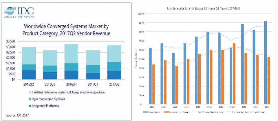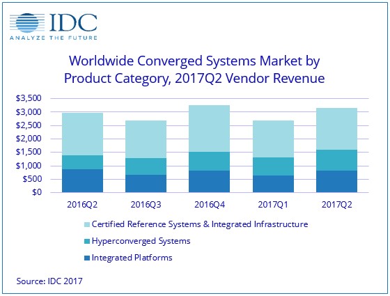 IDC的調查結果顯示,整個融合式系統在2017年第2季的銷售額,比去年同期成長了6.2%,總額達到31.5億美元,這一季新增了1.78EB容量,也比去年同期成長5.6%。