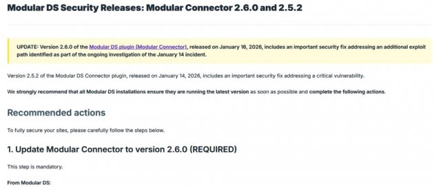 資安公司Patchstack指出,他們接獲通報,得知WordPress外掛Modular DS存在重大漏洞CVE-2026-23800,此漏洞不僅風險達到10分相當危險,且已出現實際利用的情況