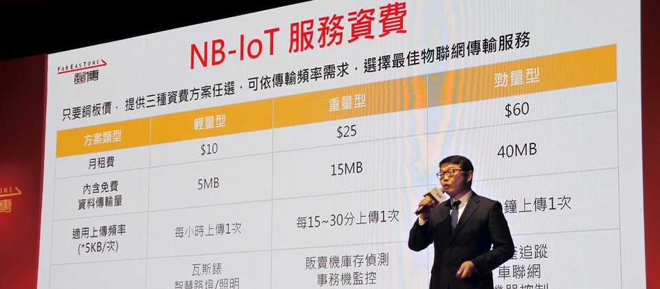 很早就提前布局NB-IoT傳輸技術的遠傳電信,搶在2017年11月推出全臺第一個NB-IoT商用服務,同時公布NB-IoT商用服務資費,每個門號每月最低收費10元起,並依據資料量、上傳頻率及應用場景,分成輕、重及勁量方案,來提供用戶選擇適合的NB-IoT服務(攝影/蘇文彬)。