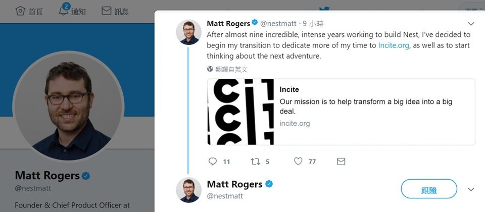 Google和Nest兩天才宣佈重新合併,但Nest共同創辦人之一Matt Rogers就宣佈離職。