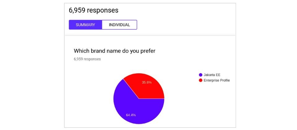 這次更改Java EE名稱的投票活動,有將近7,000人在社群投票,超過64%的人選擇了Jakarta EE,而非另一個選項Enterprise Profile作為替代Java EE的名字。