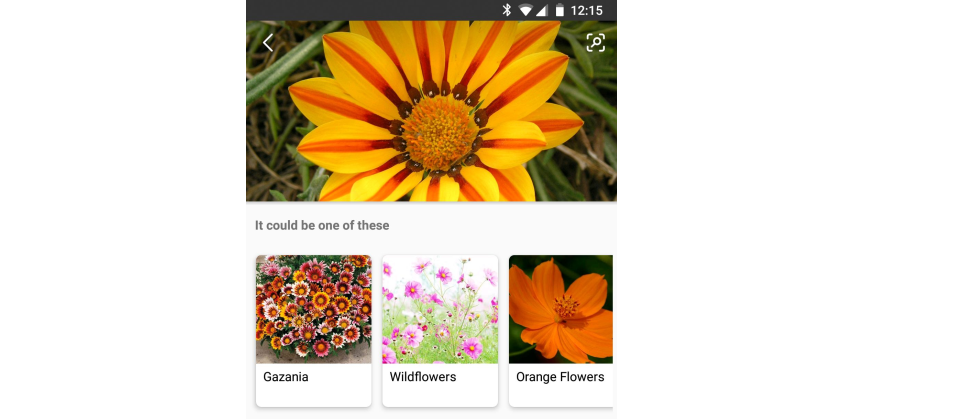 使用者在郊遊時看到不知名花草可以手機拍下進行視覺搜尋。