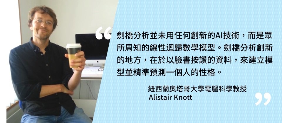 紐西蘭Otago大學電腦科學系助理教授Alistair Knott是一位擅長認知科學和AI研究的知名學者和語言學作家,尤其關注語言對人類大腦認知活動的影響,也因此,早在臉書劍橋分析醜聞爆發前,他就開始研究AI對美國大選和英國脫歐投票的影響,而劍橋分析公司如何操控訊息來影響選民,更是他的關注焦點。此外,Alistair Knott也從2017年開始對外發表他的初步研究觀察,而這份彙整了他研究成果的「Uses and abuses of AI in election campaigns」簡報更廣為流傳。