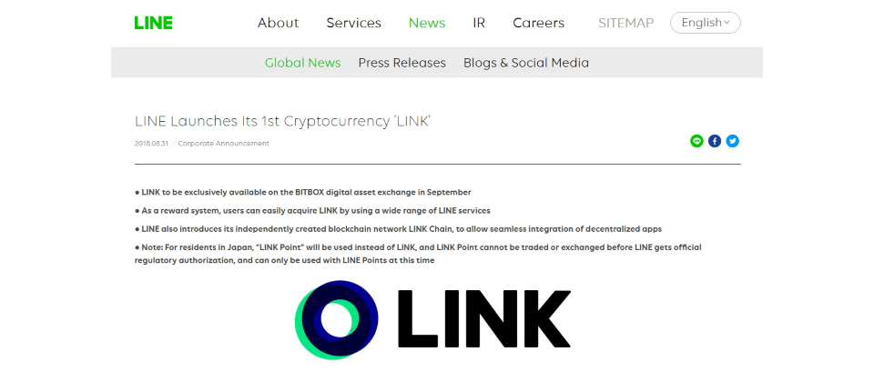 Line推出Link Chain區塊鏈網路與Link加密貨幣,使用者能用Link來支付各種產品或服務、作為社交網站的程式內付款貨幣或應用於遊戲中的交易。