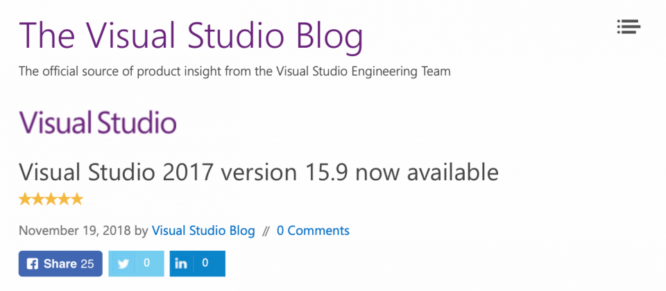 微軟釋出了Visual Studio 2017最終次要版本更新15.9,除了在C++中支援後退偵錯(Step Back Debugging)之外,還更新了.NET Core工具,而且現在還可以從Visual Studio安裝程式中,輸出配置檔案,讓使用者輕鬆的複製開發環境。