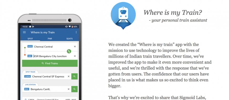打造出印度知名火車追蹤程式「Where is my Train」的Sigmoid Labs團隊周一(12/10)宣布,該團隊已被Google買下,即將成為Google的一員。