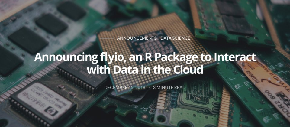 Socialcops宣布釋出Flyio,該R語言套件提供了一個通用介面,可以讓使用者直接操作來自雲端或是本機儲存的資料。雲端平臺目前支援AWS S3和Google雲端儲存。