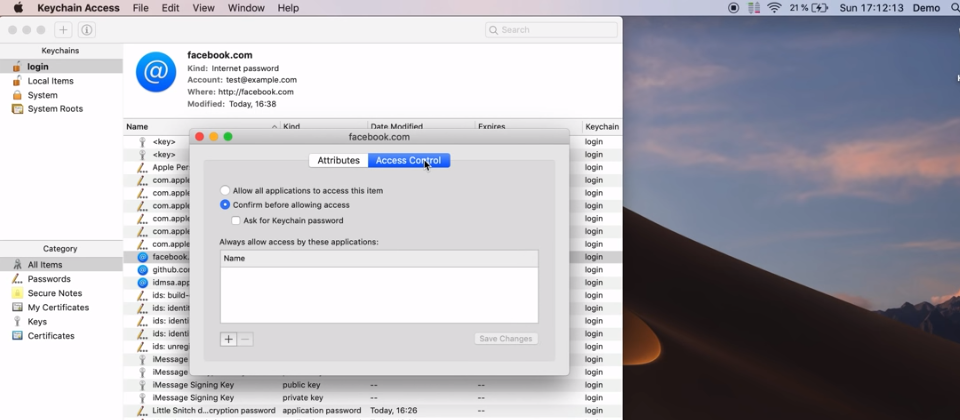 macOS作業系統的「鑰匙圈」(Keychain)功能可用來儲存各項服務的密碼,一名年僅18歲、自稱是蘋果macOS及iOS粉絲的德國業餘安全研究人員Linus Henze,打造了一個名為Keysteal的攻擊程式,並透過YouTube影片展示如何以Keysteal擷取Keychain所存放的所有密碼。