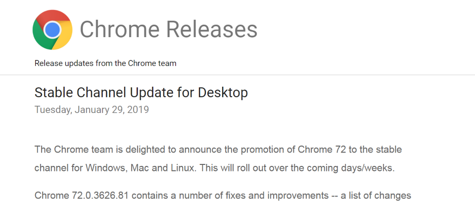 這項漏洞是由俄國資安業者Positive Technologies研究員Sergey Toshin在今年一月發現並已通報Google。Google已在一月釋出修補該漏洞的Chrome 72.0.3626.81版,但當時Google只是輕描淡寫為「瀏覽器中政策執行不足」。