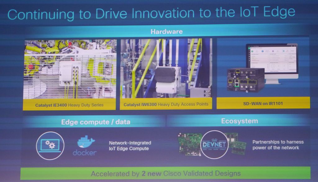 由於在各種廠區連網的需求日增,思科也在今年推出多款強固型的網路交換器、Wi-Fi無線基地臺,以及路由器,都是工業等級的網路設備,能夠忍受長期暴露於潮濕、多塵等極端環境,而且,全都是基於思科單一網路作業系統平臺IOS-XE,如此一來,也能將思科所主推的意圖式網路,延伸到化工廠、煉油廠、礦區等種種極具挑戰的特殊作業環境當中,提供IT與OT團隊建置物聯網的環境之用。