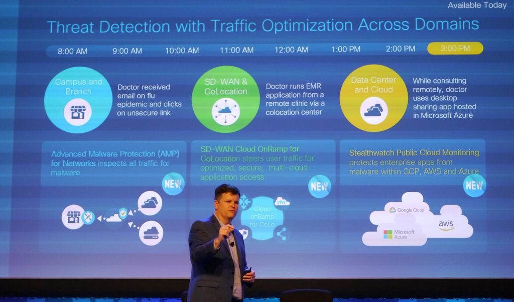 除此之外,思科也會在資料中心與廣域網路之間,自動傳送彼此的應用程式的需求,提供最佳傳輸路徑與網路流量處理的優先順序,即便應用程式移動或變更,也能靈活因應,動態提升橫跨企業與分支機構網路的應用程式效能。在網路安全的防護上,這套架構也能將加密流量的威脅偵測能力(Encrypted Traffic Analytics),從現行所能保護的園區網路、分支機構網路、廣域網路,能夠橫跨到公有雲服務上。