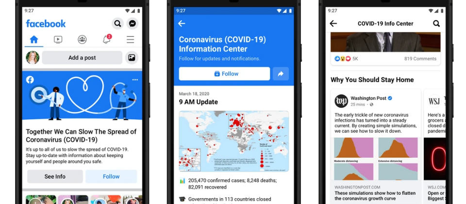 臉書已陸續於全球市場部署武漢肺炎資訊中心,24小時內會先在美國、義大利、英國、法國、德國及西班牙市場上線,之後亦會擴展至其它國家。