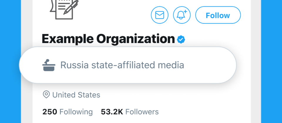 此外,Twitter也將標註那些被政府直接或間接控制,允許政府干預出版內容,或充當政府傳聲筒的官方媒體。Twitter表示,有別於獨立的媒體,這些官方媒體通常利用它們的新聞版面來宣傳政府政策或觀點,該平台認為民眾有權利知道哪些媒體其實受到政府的操控。且未來這些媒體帳號,將不會再出現在Twitter的各種推薦系統中。