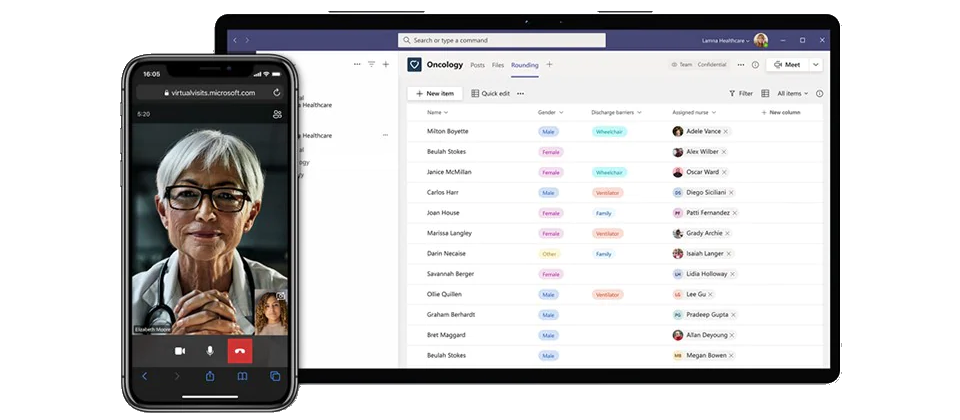 對醫護團隊,Microsoft Cloud for Healthcare也提供內部通訊工具,像是優先通知、整合智慧攝影機及訊息代理等強化醫護人員協同,並可整合醫院系統及電子病歷,達到資料交換。此外,微軟也宣稱整合AI及IoT支援,協助醫療院所及早發現徵狀異常減少再入院、做好病情管理等。