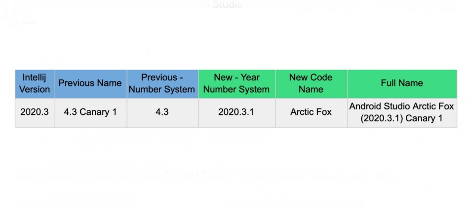 Google現在調整Android Studio和Gradle套件的版本名稱,在金絲雀頻道發布了Android Studio Arctic Fox(2020.3.1),以及Android Gradle套件7.0.0-alpha01。Google讓Gradle套件和Android Studio版本架構脫鉤,並使得IntelliJ和Android Studio能夠對應年分,並讓版本更清楚。IntelliJ IDEA是Java整合式開發環境,Google利用IntelliJ IDEA發展成Android開發環境Android Studio。