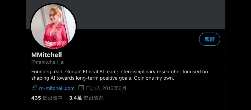 除了黑人研究員Timnit Gebru外,Google現在還開除了另一位人工智慧道德團隊共同負責人Margaret Mitchell。Margaret Mitchell從2016年以來,就是Google的研究科學家,而他在2021年2月20日的時候,於自己的推特帳號貼文「我被開除了」